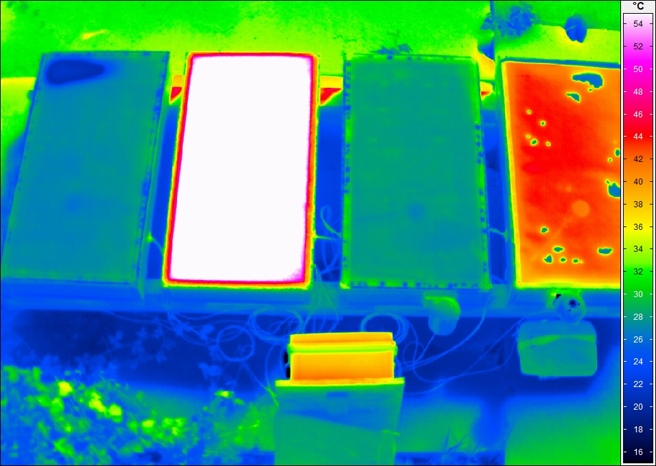 A reflective coating was applied to two test samples, while the remaining two samples served as references. We measured temperatures